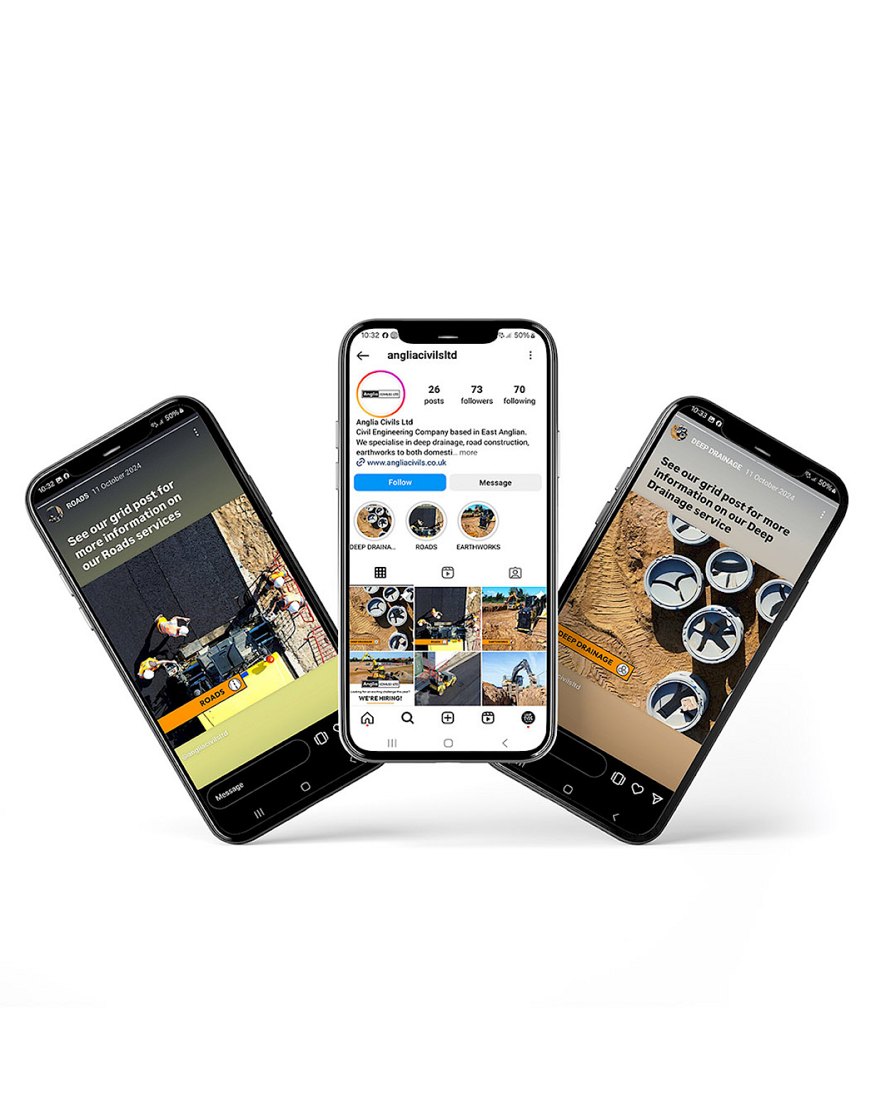 Challenge: Anglia Civils, a leading civil engineering company in East Anglia, needed a dynamic and professional online presence to showcase their expertise in deep drainage, road construction, and earthworks. They required a website that clearly communicated their capabilities, alongside effective advertising and social media management to engage their audience and attract new clients.